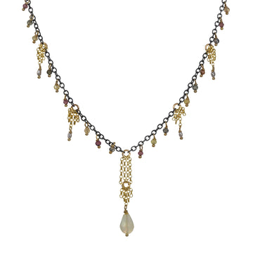 Kate Winternitz – Sapphire & Pearl Fringe Necklace with Opal Drop