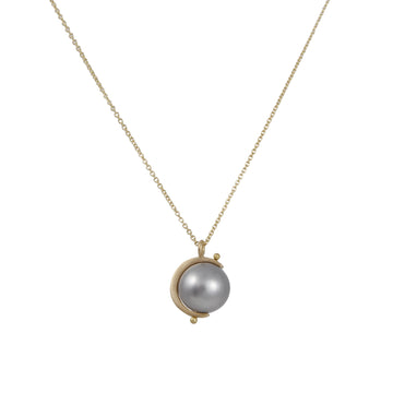 Carla Caruso - Sliver Moon with Grey Pearl Necklace