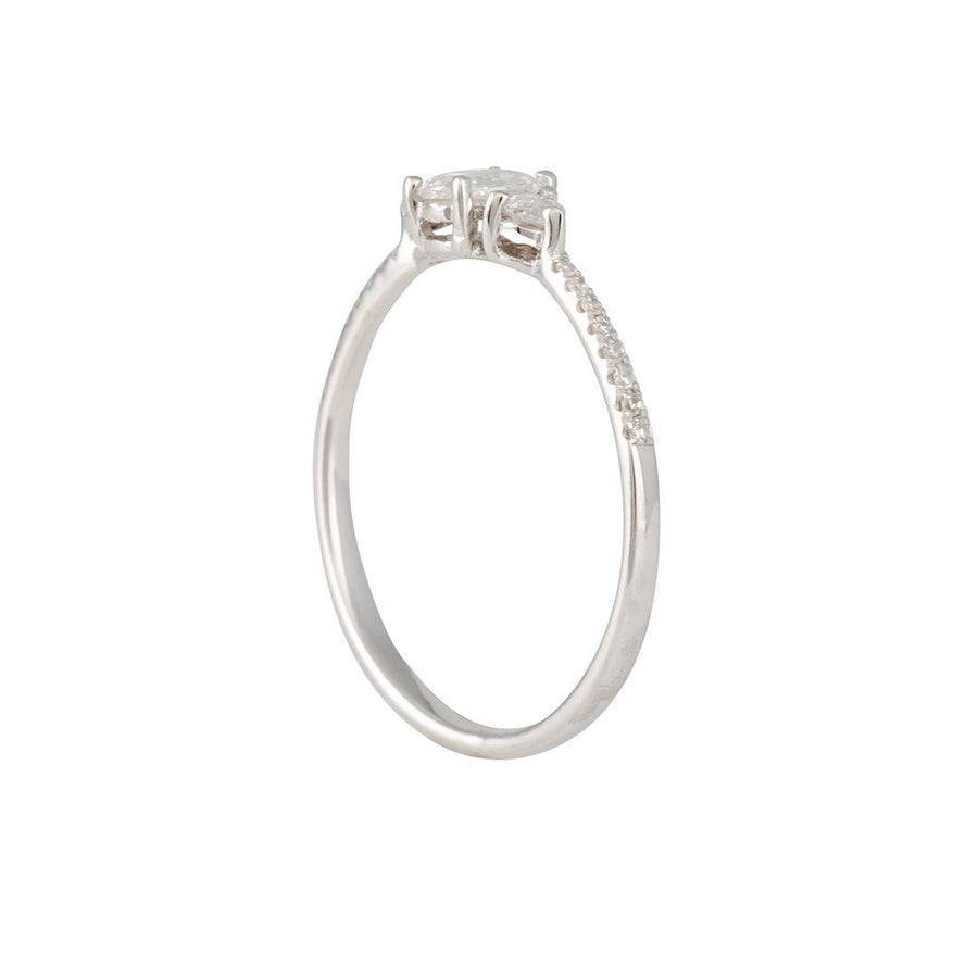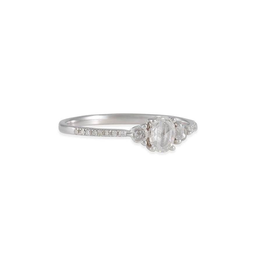 Liven - Triple Rose Cut Diamond Ring With Pave Shoulders in 14K White Gold