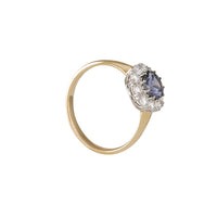 Lori Mclean - Montana Sapphire Diamond Halo Ring - The Clay Pot - Lori McLean - 14k gold, 14k white gold, Diamond, engagementring, oneofakind, ring, Sapphire, Size 7.5