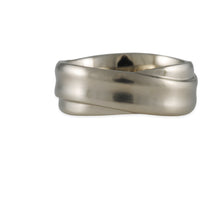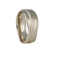 The Crossroads band features a wrap of dual finished warm white gold. A beautiful wedding band to be worn alone or as a right hand ring.