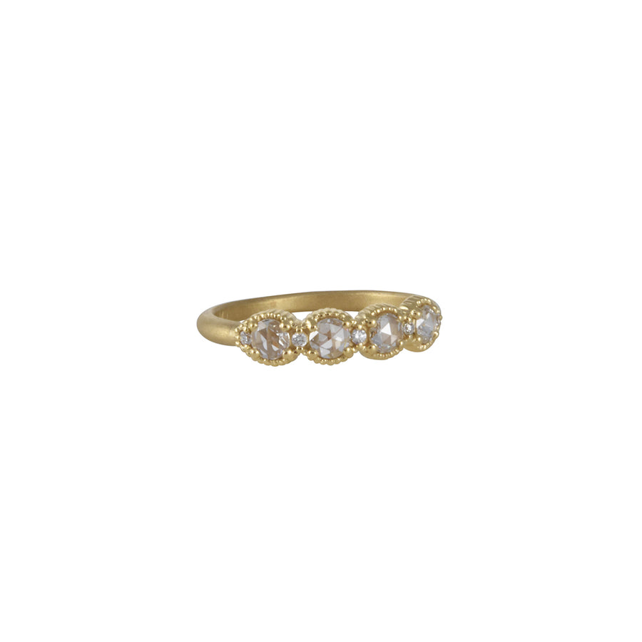 A band of juicy of rose cut diamonds, make for the ultimate celebration band. Twinkly little diamond between the rose-cuts really make the ring sparkle. Hand crafted in Megan's Fort Worth studio.