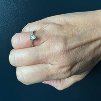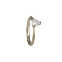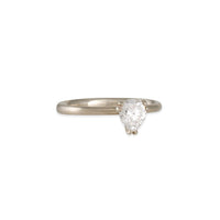 This antique pear is set with double prongs with a tasteful matte finish. This ring can also occupy a round brilliant diamond, or any other stone that you see fit. The prongs truly gives the ring a distinctive architecture, eccentric yet timeless.