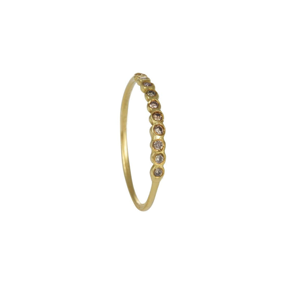 This beautiful ring by Satomi Kawakita features 12 brown diamonds bezel set round half the band making for a fabulous addition to any jewelry collection.