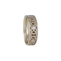 This intricately designed ring by Studio 311 features a carved love knot pattern that is accented with tiny diamonds.