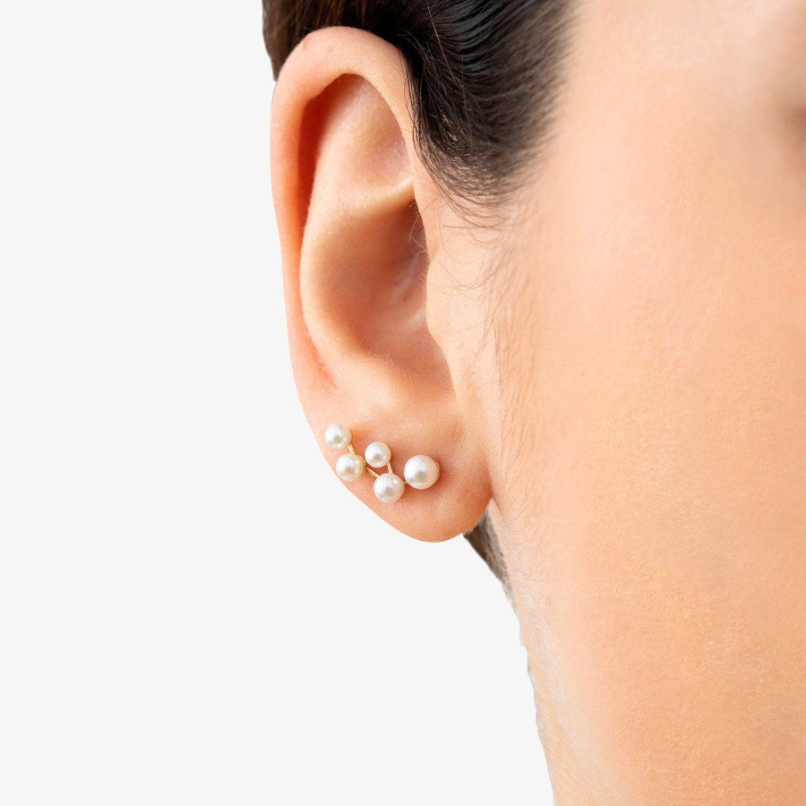 These interesting pearl climbers will gracefully curve around your earlobe. Post is set in the middle of the earrings.