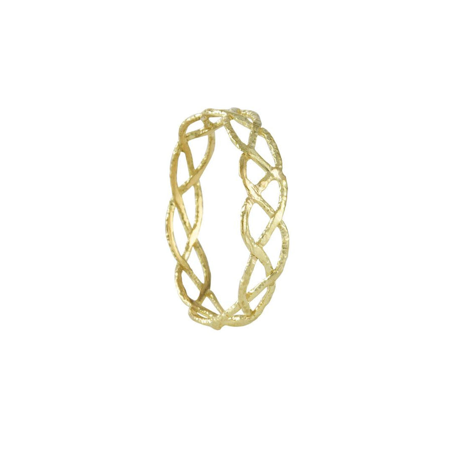 This woven ring is reminiscent of a piece of lace wrapped around your finger. Could be used as wedding band, or an airy addition to ring stack.