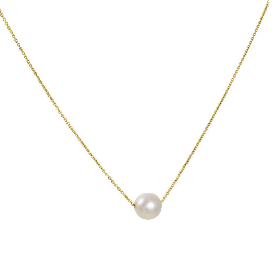This modern take on the classic pearl charm necklace features a single pearl strung on 18k yellow gold chain, perfect for everyday wear or to dress up an outfit.