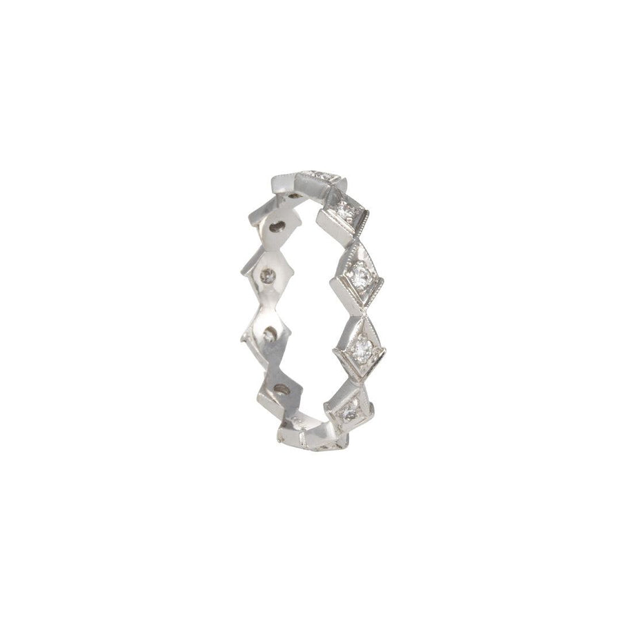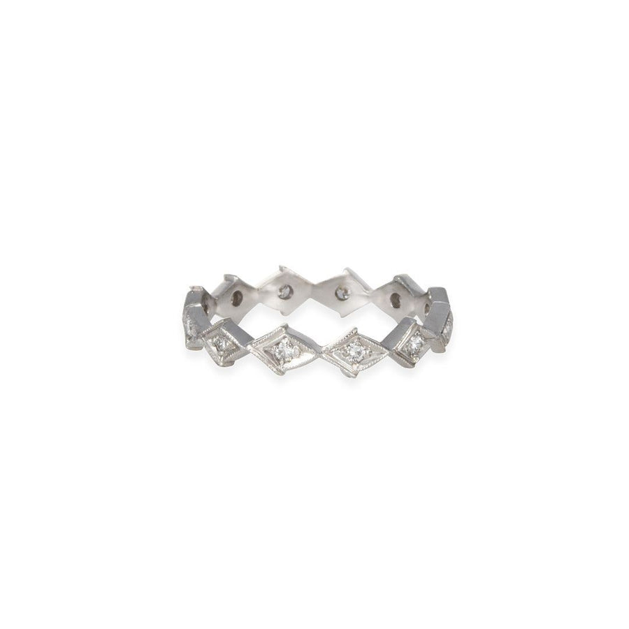This beautiful eternity band features a series of diamonds set within a string of diamonds wrapping around to eternity. This could be a perfect wedding or engagement band to mark your special milestones.