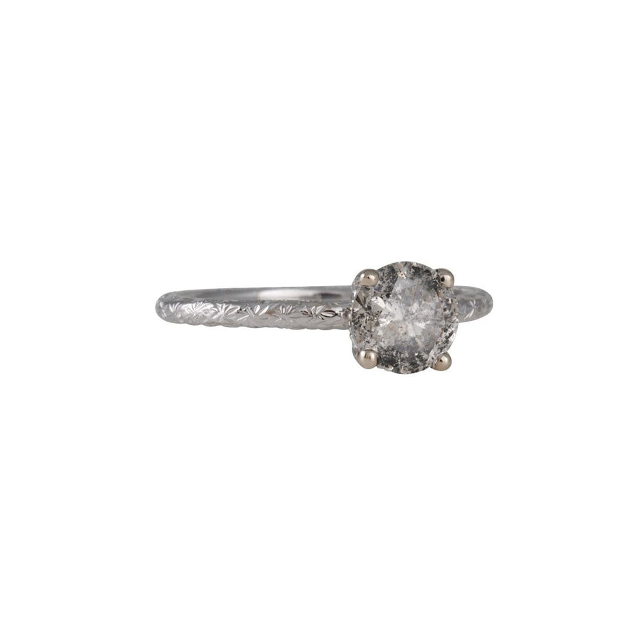 Varna - 1.27ct Salt & Pepper Diamond Ring With Hand Engraving in 18k white gold