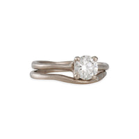 This fine crafted diamond band sets within a slightly curved band. The band is slightly tapered creating a handcrafted organic feel.