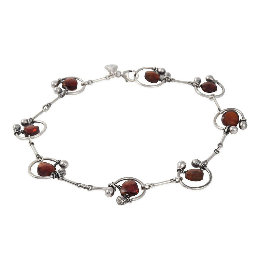 Gentle horseshoes cradle briolette garnet gems in this classic sterling silver bracelet with a twist, making it an ideal statement bracelet.